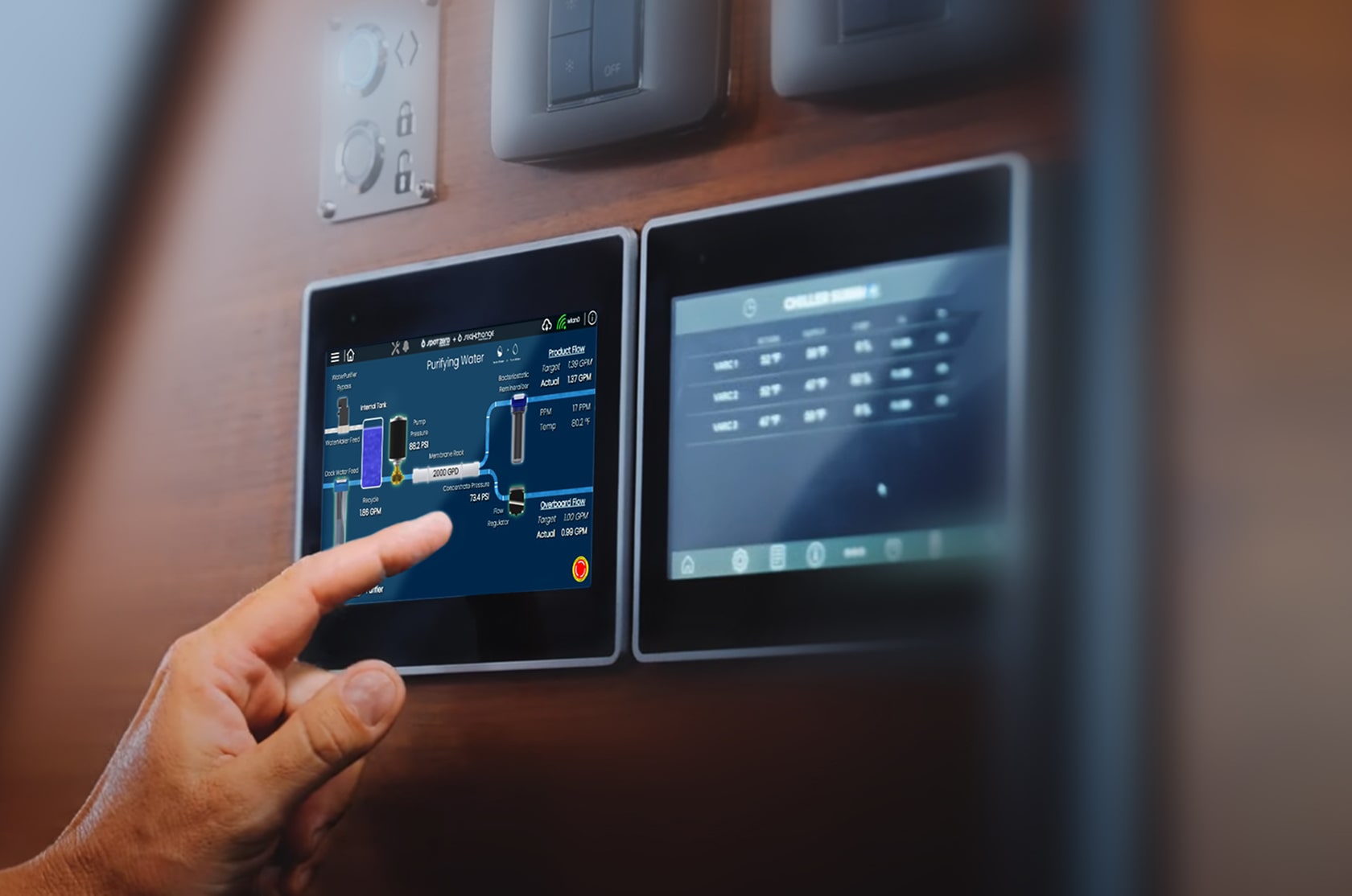 A purpose-built, intuitive touchscreen that enables wireless and remote control of the water system.